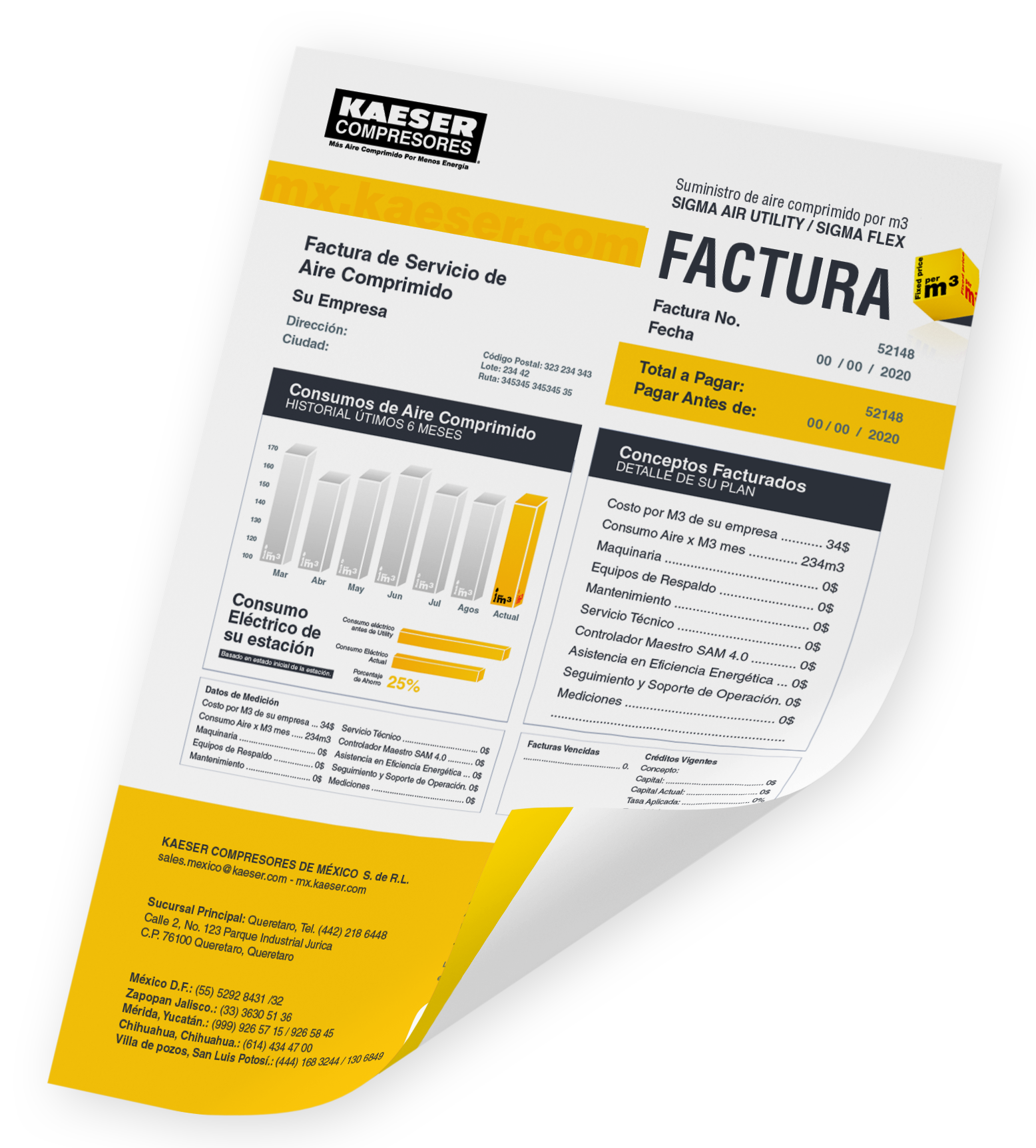Con KAESER sólo pagará mes a mes el consumo en aire por M3